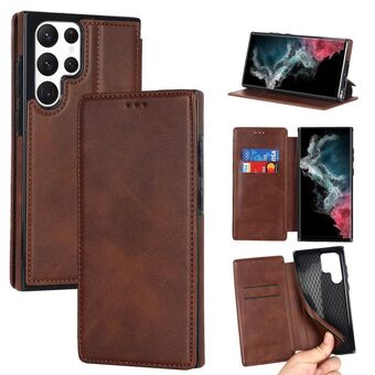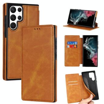 Για Samsung Galaxy S22 Ultra 5G Ιππότης μαγνητική αναρρόφηση δερμάτινη θήκη τηλεφώνου (καφέ)