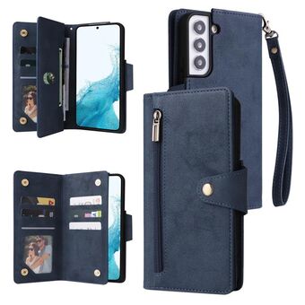 Για Samsung Galaxy S22+ Πριτσίνια πόρπη 9 κάρτες τρεις φορές δερμάτινη θήκη τηλεφώνου (μπλε)
