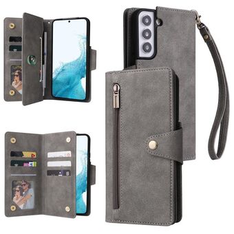 Για Samsung Galaxy S22 Rivet πόρπη 9 κάρτες τρεις φορές δερμάτινη θήκη τηλεφώνου (γκρι)
