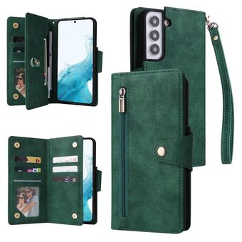 Για Samsung Galaxy S22 Rivet πόρπη 9 κάρτες τρεις φορές δερμάτινη θήκη τηλεφώνου (πράσινο)