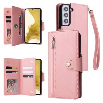 Για Samsung Galaxy S22+ Πριτσίνια πόρπη 9 κάρτες τρεις φορές δερμάτινη θήκη τηλεφώνου (ροζ χρυσό)