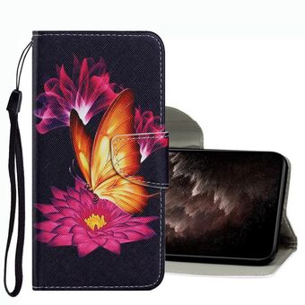 Θήκη τηλεφώνου δερμάτινη με σχέδιο ζωγραφικής και χρώματα για Samsung Galaxy S22 Ultra 5G (Ροζ Πεταλούδα)