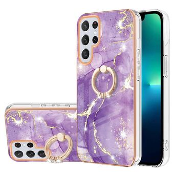 For Samsung Galaxy S22 Ultra Electroplating Marble IMD TPU Phone Case with Ring Holder(Purple 001)