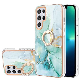For Samsung Galaxy S22 Ultra Electroplating Marble IMD TPU Phone Case with Ring Holder(Green 004)