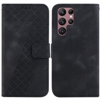 For Samsung Galaxy S22 Ultra 5G Seven-shaped Embossed Leather Phone Case(Black)