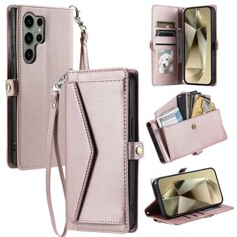Για Samsung Galaxy S22 Ultra 5G Πορτοφόλι Multi-card Slot Δερμάτινη θήκη τηλεφώνου με κορδόνι (ροζ χρυσό)