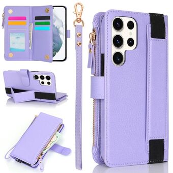 Για Samsung Galaxy S22 Ultra 5G Wristband κάτοχος φερμουάρ πορτοφόλι RFID δερμάτινη θήκη τηλεφώνου (Μωβ)
