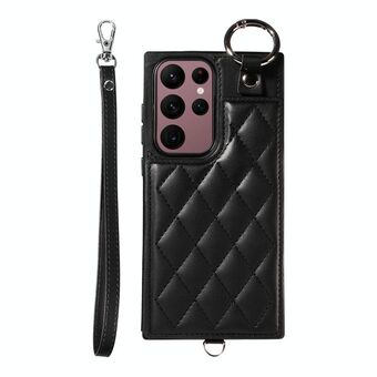 Για το Samsung Galaxy S22 Ultra 5G Rhombic υφή κάρτα τσάντα υπόθεση τηλεφώνου με σύντομο κορδόνι (μαύρο)