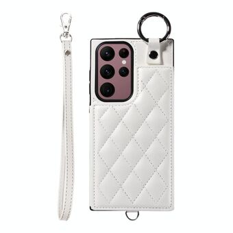 Για Samsung Galaxy S22 Ultra 5G Rhombic υφή κάρτα τσάντα υπόθεση τηλεφώνου με σύντομο κορδόνι (λευκό)