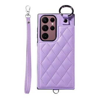 Για Samsung Galaxy S22 Ultra 5G Rhombic υφή κάρτα τσάντα υπόθεση τηλεφώνου με σύντομο κορδόνι (μωβ)