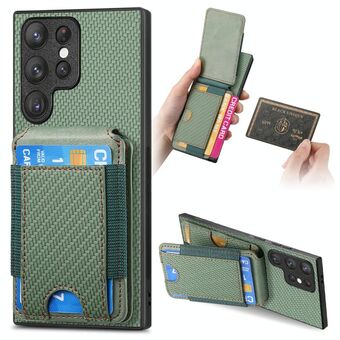 Για Samsung Galaxy S22 Ultra 5G Carbon Fiber Κάθετη Flip Wallet Stand υπόθεση τηλεφώνου (πράσινο)