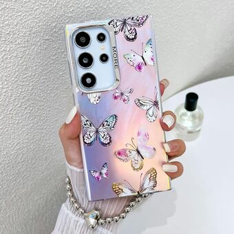 Για Samsung Galaxy S22 Ultra 5G Electroplating λέιζερ πεταλούδα υπόθεση τηλεφώνου με λουράκι καρπού (λευκό μοβ πεταλούδες AB6)
