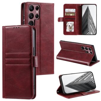 For Samsung Galaxy S22 Ultra 5G Simple 6-Card Wallet Leather Phone Case(Wine Red)