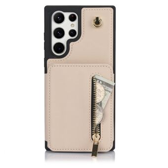For Samsung Galaxy S22 Ultra 5G YM006 Skin Feel Zipper Card Bag Phone Case with Dual Lanyard(Apricot)