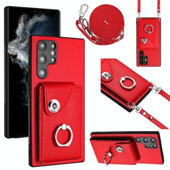 For Samsung Galaxy S22 Ultra 5G Organ Card Bag Ring Holder Phone Case with Long Lanyard(Red)