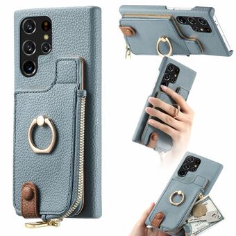 For Samsung Galaxy S22 Ultra 5G Litchi Leather Oil Edge Ring Zipper Wallet Back Phone Case(Blue)
