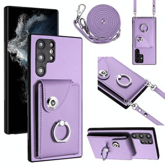 For Samsung Galaxy S22 Ultra 5G Organ Card Bag Ring Holder Phone Case with Long Lanyard(Purple)