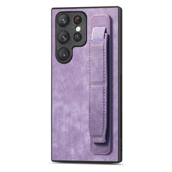 For Samsung Galaxy S22 Ultra 5G Retro Wristband Holder Leather Back Phone Case(Purple)