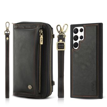 For Samsung Galaxy S22 Ultra 5G Crossbody Multi-functional Zipper Wallet Leather Phone Case(Black)