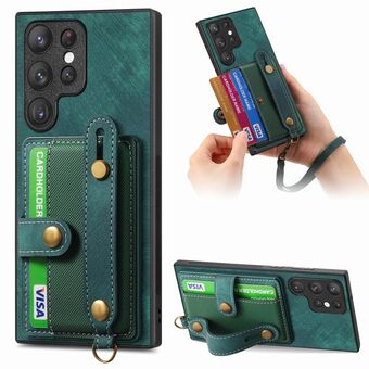 Για Samsung Galaxy S22 Ultra 5G Ρετρό Σταυρός Wristband πορτοφόλι δέρμα πίσω υπόθεση τηλεφώνου (πράσινο)