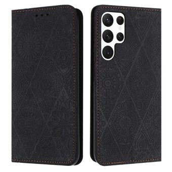 For Samsung Galaxy S22 Ultra 5G Ethnic Embossed Adsorption Leather Phone Case(Black)