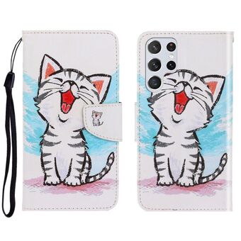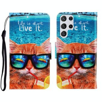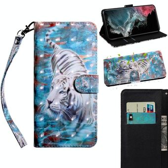For Samaung Galaxy S22 Ultra 5G 3D Painted Pattern Horizontal Flip Leather Phone Case with Holder & Lanyard(Tiger)