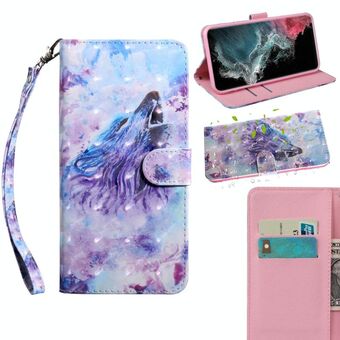 For Samaung Galaxy S22 Ultra 5G 3D Painted Pattern Horizontal Flip Leather Phone Case with Holder & Lanyard(Roaring Wolf)