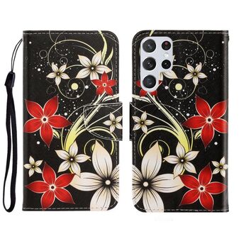 For Samsung Galaxy S22 Ultra 5G 3D Colored Drawing Horizontal Flip Leather Phone Case(Red Flower)