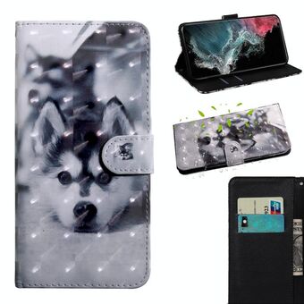 For Samaung Galaxy S22 Ultra 5G 3D Painted Pattern Horizontal Flip Leather Phone Case with Holder & Lanyard(Husky)