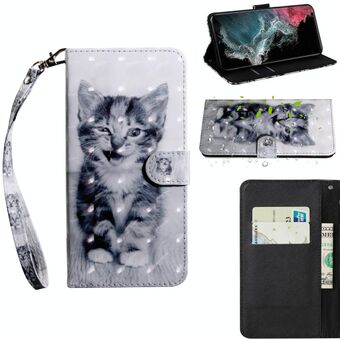 For Samaung Galaxy S22 Ultra 5G 3D Painted Pattern Horizontal Flip Leather Phone Case with Holder & Lanyard(Smile Cat)