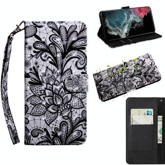 For Samaung Galaxy S22 Ultra 5G 3D Painted Pattern Horizontal Flip Leather Phone Case with Holder & Lanyard(Black Lace)