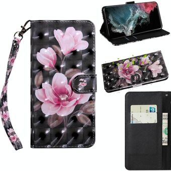 For Samaung Galaxy S22 Ultra 5G 3D Painted Pattern Horizontal Flip Leather Phone Case with Holder & Lanyard(Pink Flower)