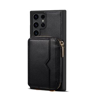 Για Samsung Galaxy S22 Ultra 5G φερμουάρ Θήκη τηλεφώνου με υποδοχή κάρτας (Μαύρο)