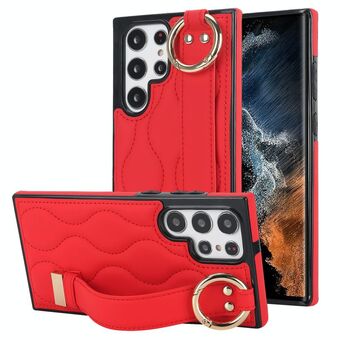 Για Samsung Galaxy S22 Ultra αντιολισθητική πλήρους κάλυψης δαχτυλίδι PU υπόθεση τηλεφώνου με ζώνη καρπού (κόκκινο)