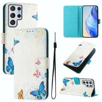 For Samsung Galaxy S22 Ultra 5G Art Colored Drawing Pattern Leather Phone Case(Fireworks butterfly)