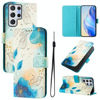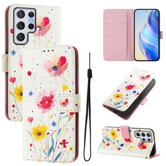 For Samsung Galaxy S22 Ultra 5G Art Colored Drawing Pattern Leather Phone Case(Flowers and plants)