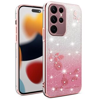 For Samsung Galaxy S22 Ultra 5G Gradient Glitter Flower All-inclusive Phone Case(Pink)