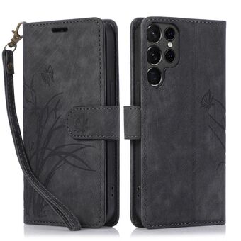 For Samsung Galaxy S22 Ultra 5G Orchid Butterfly Embossed Leather Phone Case(Black)