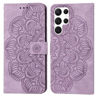 Για Samsung Galaxy S22 Ultra 5G Mandala ανάγλυφο Flip υπόθεση τηλεφώνου δέρμα (μωβ)