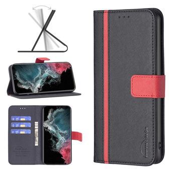 Για Samsung Galaxy S22 Ultra 5G BF13 χρώμα ταιριάζει με σταυρό υφή δερμάτινη θήκη τηλεφώνου (κόκκινο)