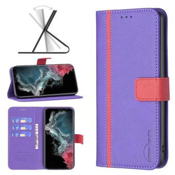 Για Samsung Galaxy S22 Ultra 5G BF13 χρώμα ταιριάζει με σταυρό υφή δερμάτινη θήκη τηλεφώνου (μωβ)