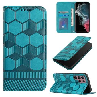 Για Samsung Galaxy S22 Ultra 5G Ποδόσφαιρο υφή μαγνητική δερμάτινη θήκη Flip τηλέφωνο (γαλάζιο)