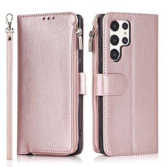 Για Samsung Galaxy S22 Ultra 5G Microfiber φερμουάρ οριζόντια Flip δερμάτινη θήκη (Rose Gold)