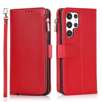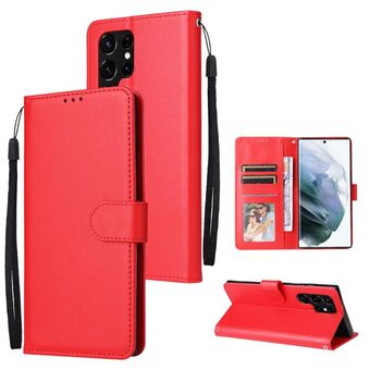 Για Samsung Galaxy S22 Ultra 5G 3 υποδοχές για κάρτες Πολυλειτουργική δερμάτινη θήκη τηλεφώνου (κόκκινο)