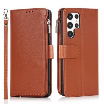 Για Samsung Galaxy S22 Ultra 5G Microfiber φερμουάρ οριζόντια Flip δερμάτινη θήκη (καφέ)