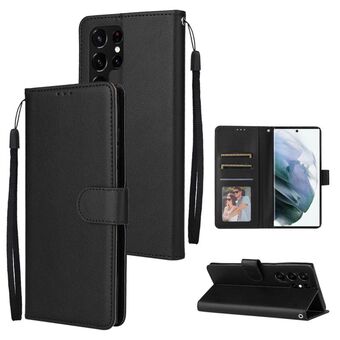 Για Samsung Galaxy S22 Ultra 5G 3 υποδοχές για κάρτες Πολυλειτουργική δερμάτινη θήκη τηλεφώνου (Μαύρο)