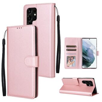 Για Samsung Galaxy S22 Ultra 5G 3 υποδοχές καρτών Πολυλειτουργική δερμάτινη θήκη τηλεφώνου (ροζ χρυσό)
