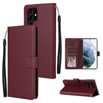 Για Samsung Galaxy S22 Ultra 5G 3 υποδοχές για κάρτες Πολυλειτουργική δερμάτινη θήκη τηλεφώνου (κόκκινο κρασί)