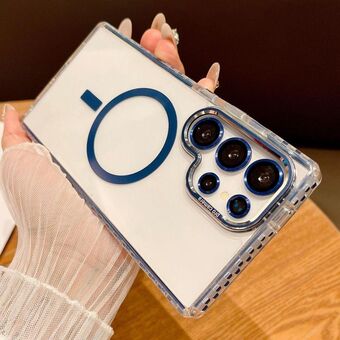 For Samsung Galaxy S22 Ultra 5G Transparent MagSafe Phone Case with Lens Film(Blue)