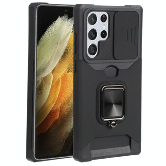 Για Samsung Galaxy S22 Ultra 5G συρόμενη κάμερα Cover Design PC + TPU Shockproof τηλέφωνο υπόθεση με δαχτυλίδι κάτοχος & υποδοχή κάρτας (μαύρο)
